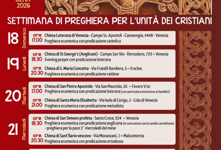 SETTIMANA DI PREGHIERA PER L’UNITA’ DEI CRISTIANI 2026